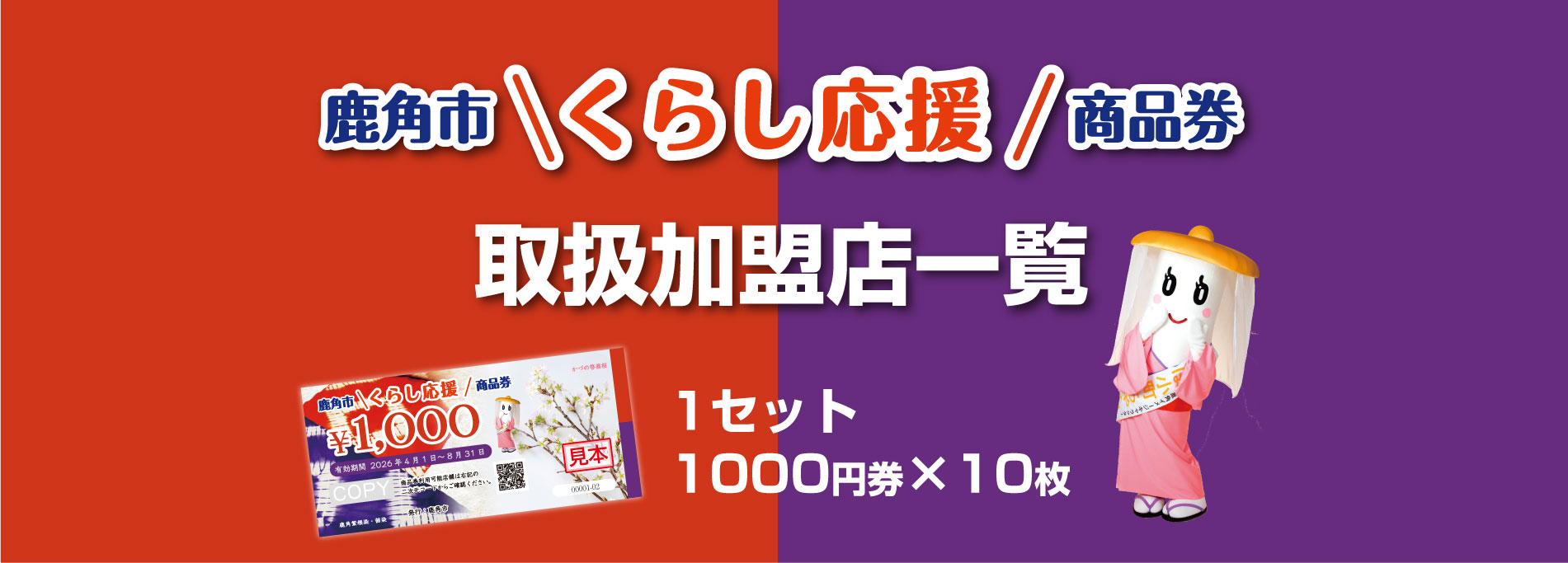 1.この商品券は鹿角市内の「取扱加盟店」で使用できます。